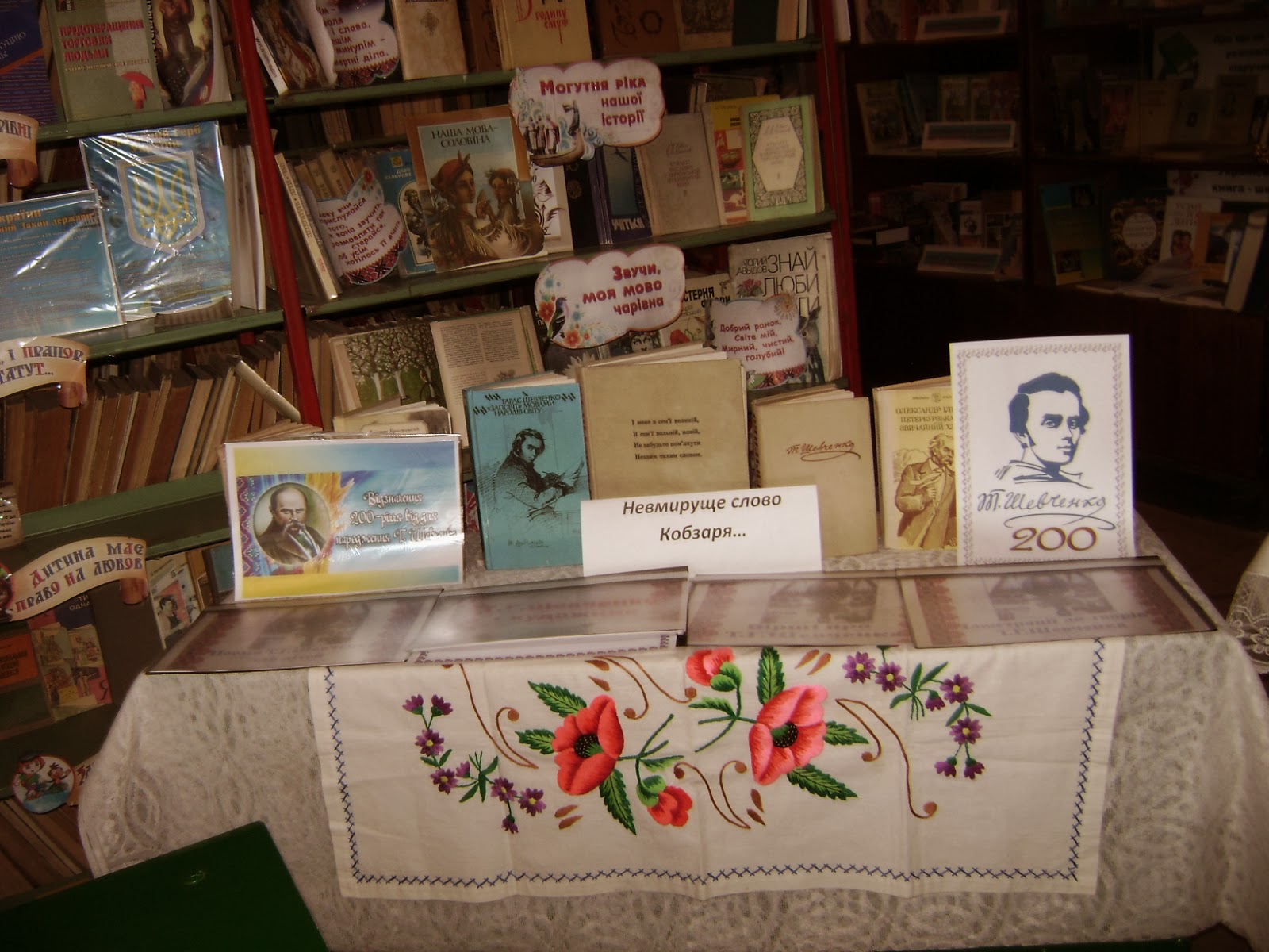 В шкільній бібліотеці оформлена книжкова виставка "Невмируще слово Кобзаря", оглянувши яку учні мали змогу ознайомитися з творчістю видатного поета, сторінками його життя. Бібліотекарем підготовлений цікавий матеріал про Тараса Шевченка - художника, учні декламували улюблені твори видатного поета.